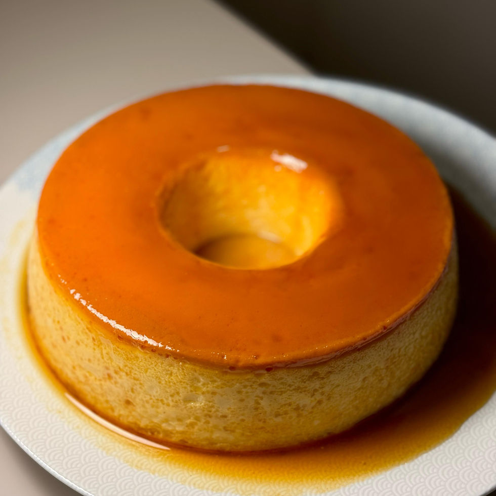 3. Passe a calda caramelizada por toda a lateral da assadeira e despeje a mistura do liquidificador.